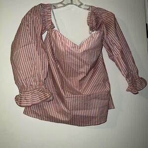 Absolute gorgeous dusty rose/mauve pink and white striped shirt. Sleeves off the shoulders. U can go bra-less with this too. Great for all seasons. Dress up for a night on the town or casual with your favorite denim!