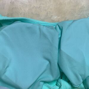 Flirty little mint colored ribbed tank style swim top. Cute little tie front detail. Light removable padding. First picture accurately depicts color.