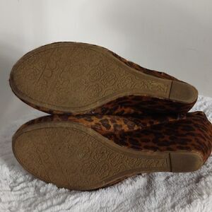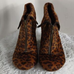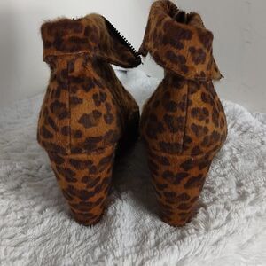 These Sugar brown faux fur leopard print wedge booties are a size 8-1\2M. They have 3-1/4" wedge heel and zip up the front. Pre-owned and in excellent condition. All offers welcome.