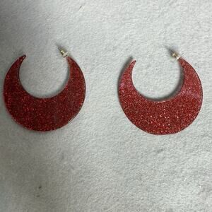 SugarFix By Baublebar C Hoop Earrings Red Sparkly Women Fashion Holiday Jewelry