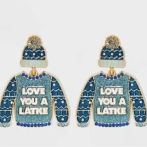 SugarFix by Baublebar "Love You a Latke" Sweater + Hat Drop Dangle Earrings NWT