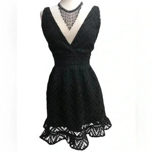 Sugar+Lips Black All My Love Plunging Crochet Lace Dress- NWT
