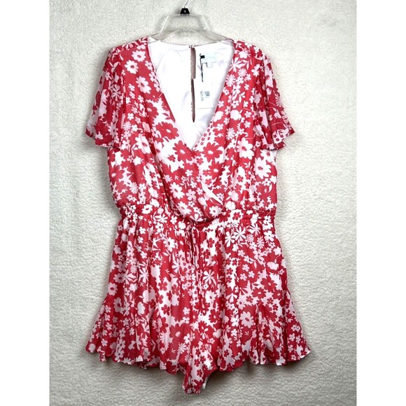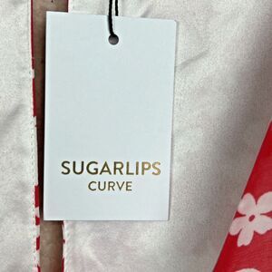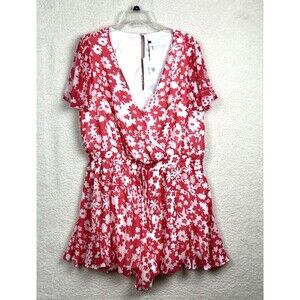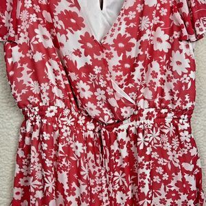 SugarLips Curve Floral Red White Short Romper Women Plus Size 2X New. Elastic adjustable waist. Wrapped bodice with snap closure. Lined garment. See photos for details.