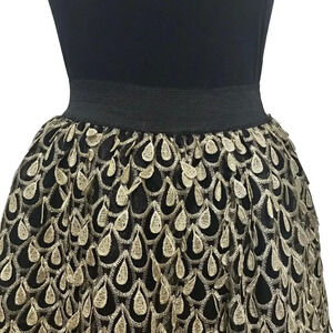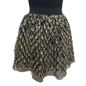 NWOT. Flare (circle, full) mini skirt Juniors/Women Various Sizes. Elastic band at waist, pull on style, gold teardrop tassels design, internal lining with organza lining for fullness. Top and necklaces are not included - skirt only. Pictures are part of description.