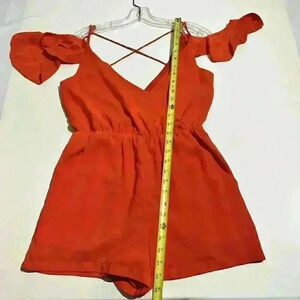 Sugar+Lips Womens Romper One Piece Coral Deep V Strappy Lightweight Ruffle S