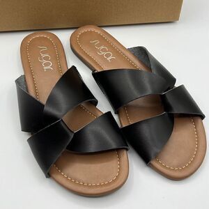 This fashionable slip on flat sandal with its soft material is as trendy as it is comfortable with a memory foam footbed. Dress it up for a night out or dress it down for all day casual looks.