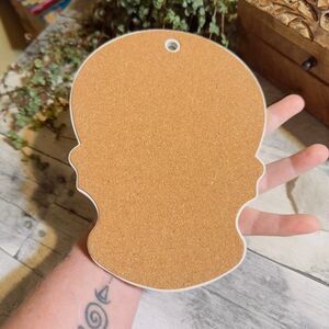 Brand new sugar skull ceramic plaque with a cork backing. Features a pre-drilled hole for easy wall hanging. Perfect for Day of the Dead décor, boho spaces, or as a unique art piece.