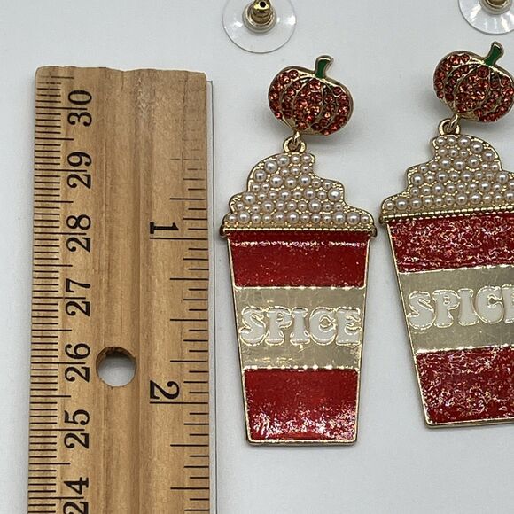 fall fashion, seasonal jewelry, statement earrings, coffee lover gift, sparkle, dopamine dressing, pumpkin spice aesthetic, sparklecore, fall girly, y2k kitsch