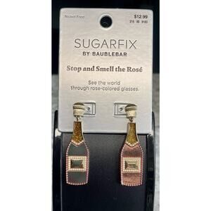 Sugarfix Baublebar Stop and Smell the Rose pink wine bottle drop earrings NWT