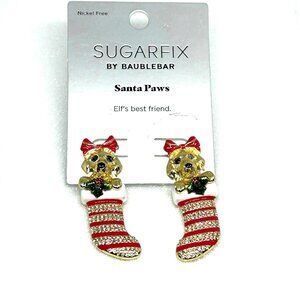Sugarfix By Baublebar Santa Paws Christmas Stocking Earrings Gold-Tone & Red