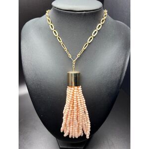 Sugarfix by BaubleBar long necklace with peach beaded tassel.