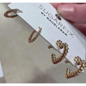 Includes 2 packs of brand new Sugarfix by BaubleBar gold toned heart themed earrings!