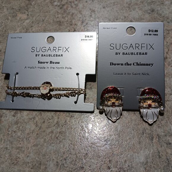 Brand New adorable Santa Christmas earrings and bracelet. SUGARFIX by Baublebar. "Snow Beau" bracelet. "Down the Chimney" earrings.