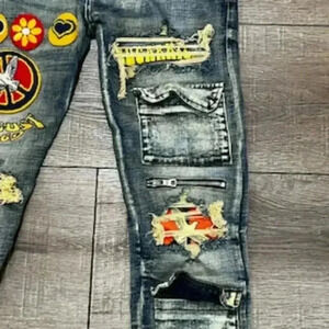 Sugarhill Woodstock Denim Wheat Wash Stretch Taper Distressed Jeans Men's sz 30