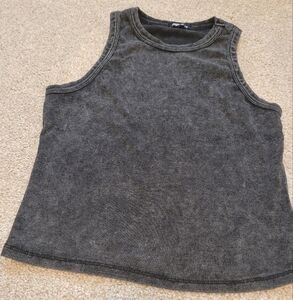 Sugarkiss Y2K Womens Grey Acid Ribbed Crop Tank Top Size Large