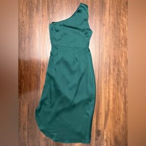 Sugarlips Chateau One Shoulder Ruched Belen Midi Dress Small Green Satin Chic
