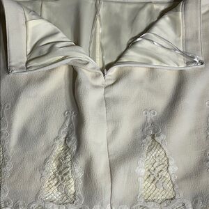 Elegant cream mini skirt with delicate lace detailing. Perfect for a chic look.