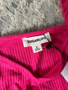 Sugarlips Fuchsia Ruffle Strap Ribbed Tank