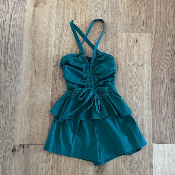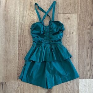 Sugarlips Green Abalone Ruched Ruffled Romper