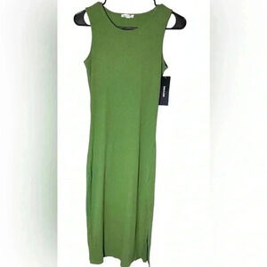 Sugarlips Lisbon Ribbed Knit Tank Midi Dress in Olive XS NEW