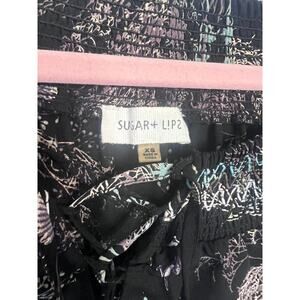 The Sugarlips Size XS dress in black features a chic and stylish A-line design, perfect for casual occasions during the summer and spring seasons. Made from polyester, this short dress is from the Sugarlips brand and is not vintage. With a personalized touch, this dress is a versatile and fashionable option for women looking for a sleek and trendy wardrobe piece.