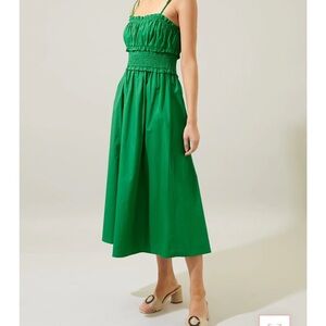 Sugarlips Smocked Strap Poplin Midi Dress Green Size Medium