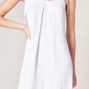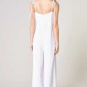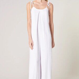 Easy dressing in this cool and comfortable wide leg jumpsuit. Features tie straps and pleating detail.
