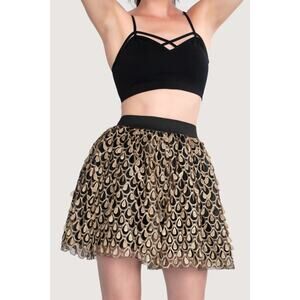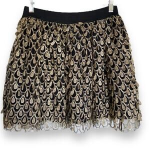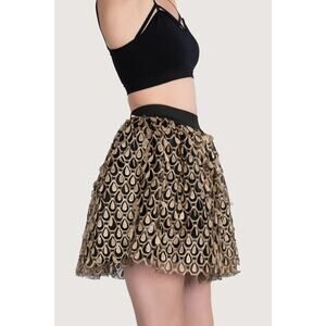 Sugarlips Womens Skirt Size Large Gold Black Peacock High Waisted NEW