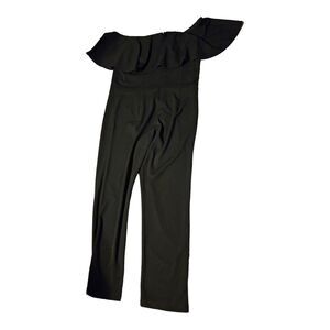 Black off the shoulder jumpsuit size XL is used but in good condition. Brand is Sugarlips. Measurements are a flat lay and are approximate.