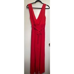 NWT Sugarlips Red Wide Leg Dressy Jumpsuit with side zipper, pockets and attached sash belt.