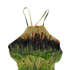 Sugarlips Dress High Low Midi Strappy Colorful Rainbow Jagged Striped Sz S