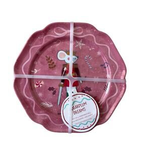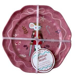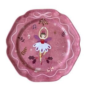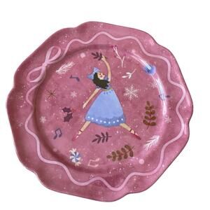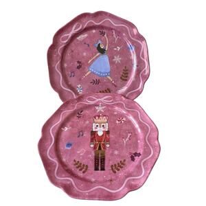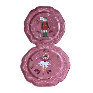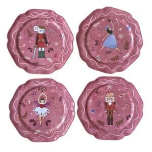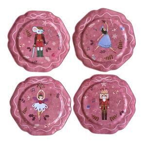 Sugarplum Dreams Christmas Nutcracker 8.5” PINK Melamine Plate Set of 4 NEW