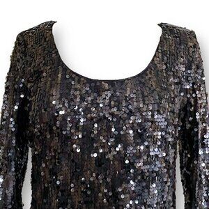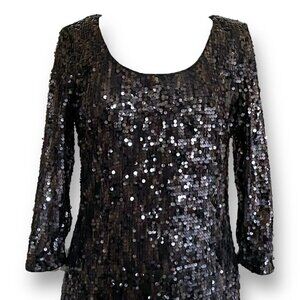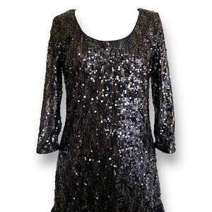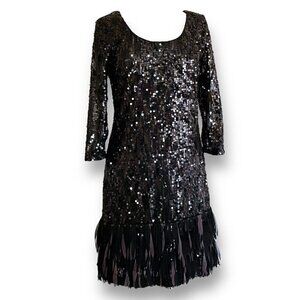 Sugarplum Womens Cocktail Dress Sz M 10 Black Sequined Feather Fringe Hem LBD