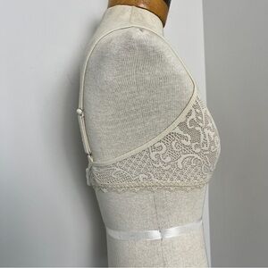 Suggest Cream Lace Floral Design Bralette Bra Nonpadded No wire Sz 32B
