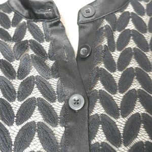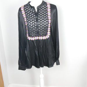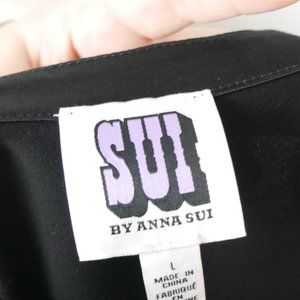 Sui by Anna Sui Black Blouse Silky with Lace and Embroider Details Large