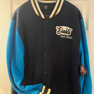 Suicide squad, movie Diablo snap jacket men’s extra large tall DC comics Warner bros varsity bomber navy , blue sleeves new with tags