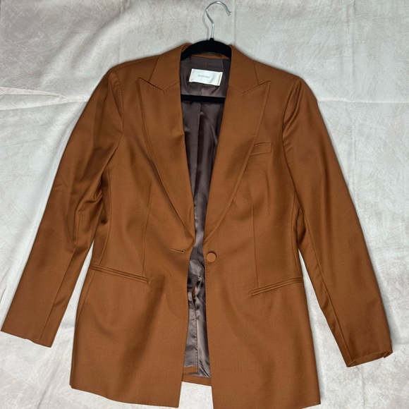 SuisStudio Womens Rust-Brown Single-Button Blazer