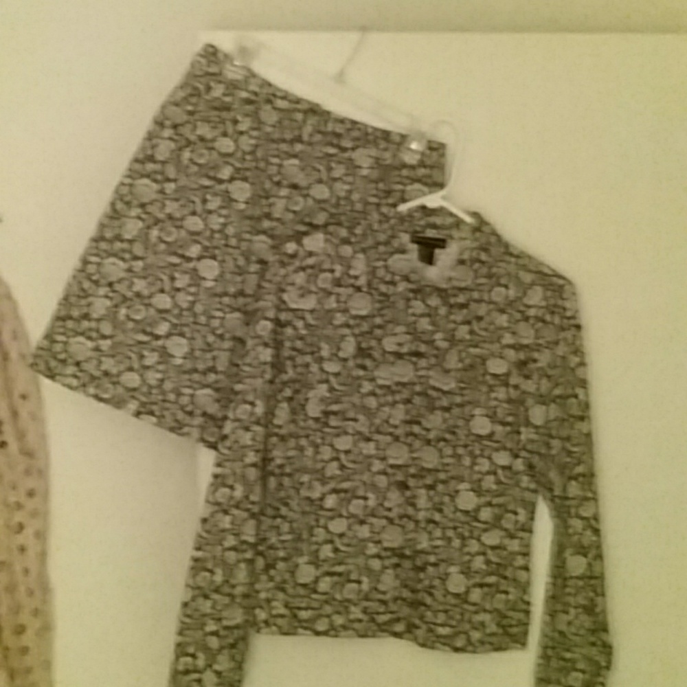 Navy with cream flowers, cotton, only worn a few times. Looks brand new. Above the knee skirt, supper comfy.