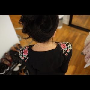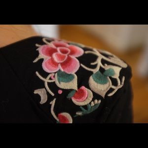 Super unique hand sewn suit with rose embroidery shoulder detail