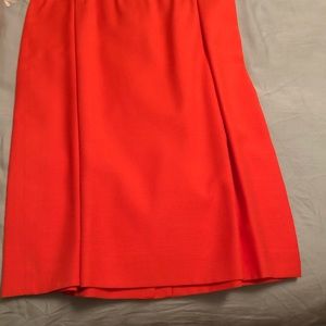 The skirt is 27 1/2 inches long from top of waist band. It is rayon and the lining is acetate. Beautiful suit never worn that I remember.