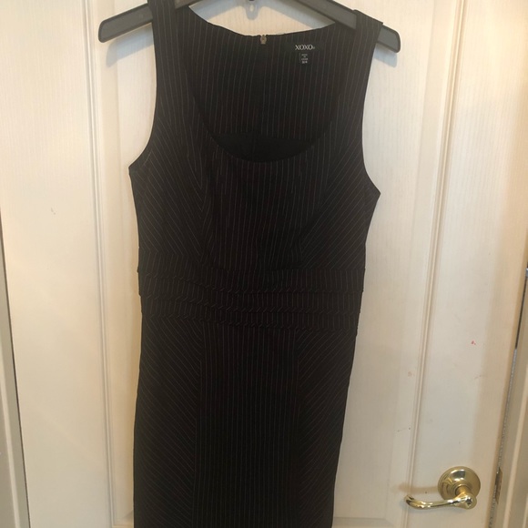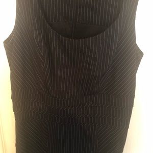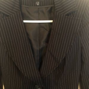 Black suit with white pin stripe.