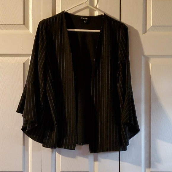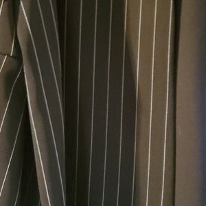 Pin stripe suit, 3/4 sleeve with ruffle/wide cuffs. Straight/wide leg