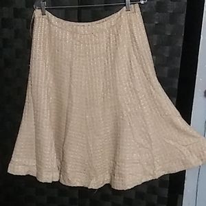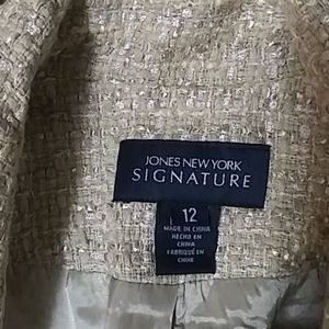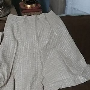 2 or $20. Tan tweed type skirt and jacket. Skirt has flair, jacket has pockets no buttons.