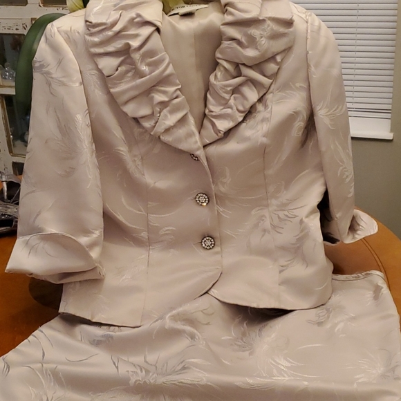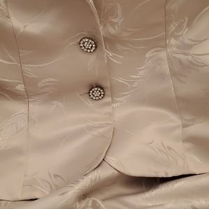 Ladies Sateen Damask fabric Polyester & Acetate shell Cocktail 2 pc with 4 button crystal button closure & 3 quarter sleeve. Ohh she's Fancy if you're ready for her