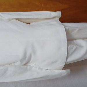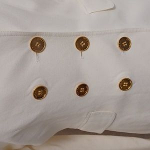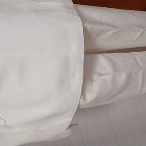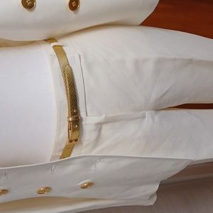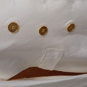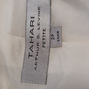 This suit is in very good condition except for those 3 stains. I most likely sat on a tree sap since it was a garden wedding. It is not noticeable since the blazer provides coverage. Size Petite 2. Please refer to Tahari's sizing. Blazer and Pants are lined. My selling price has taken the stain into consideration. I wore this outfit a couple of times.