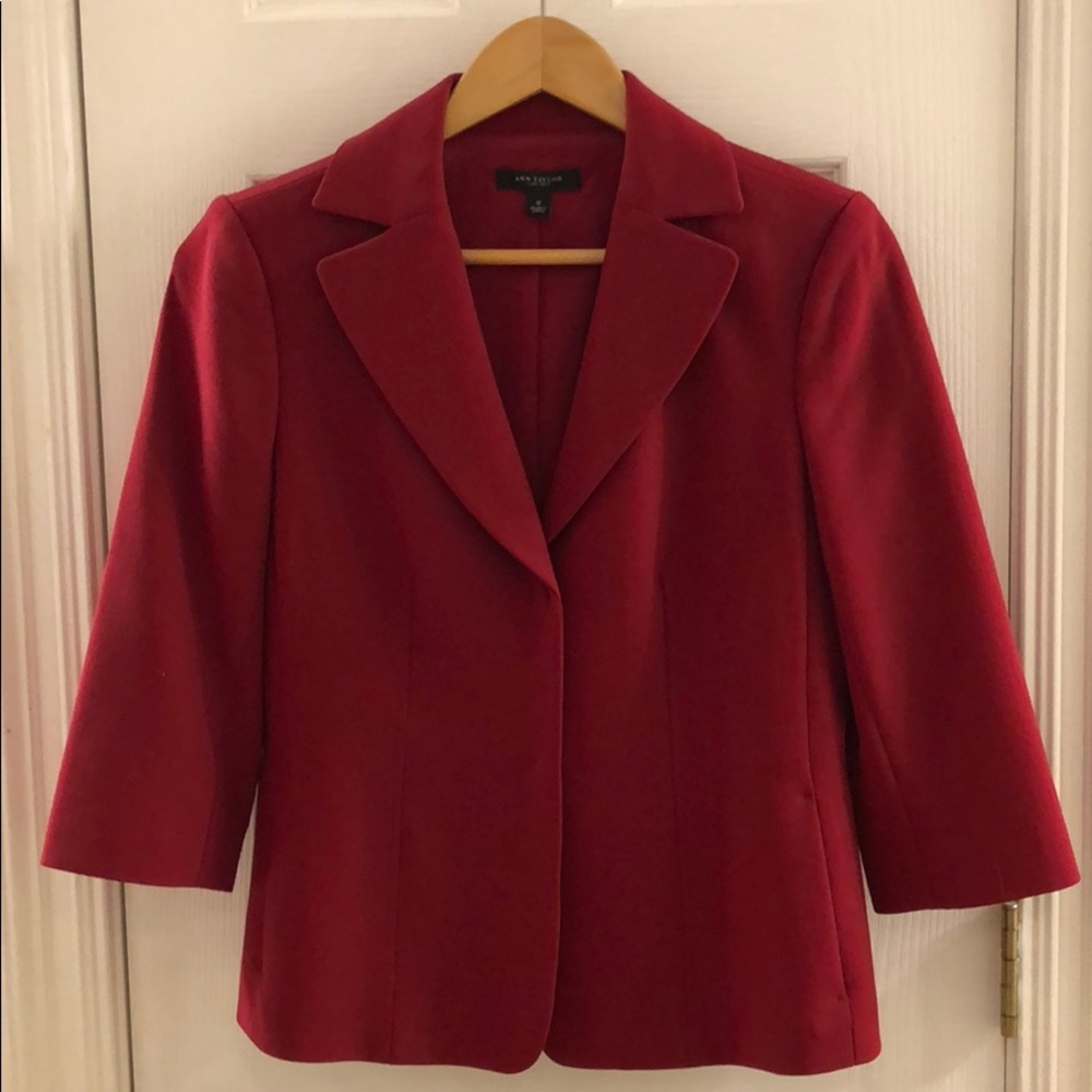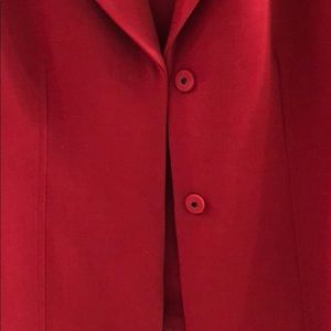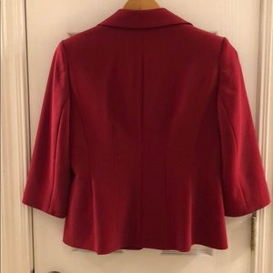 Red, short sleeve, lined jacket. Closes with two magnetic buttons for a tailored look.