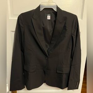 J. Crew suit jacket. Has notched lapels with stitched detailing, center back vent. Fully lined, long sleeved with 4 button cuffs. Shoulder pads. No tags but never been worn. Dry clean only.