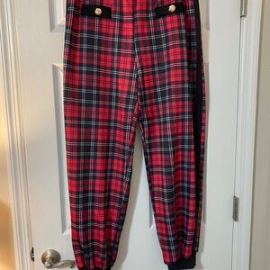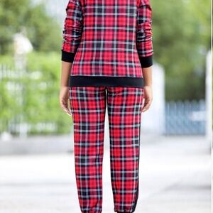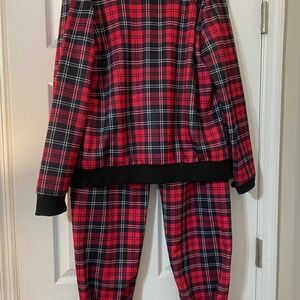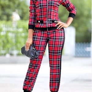 Red plaid long sleeve zippered suit set