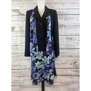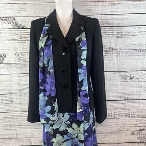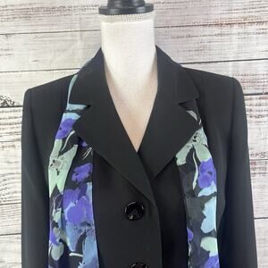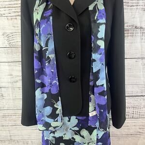 Suit Studio 3pc Skirt Suit size 8 Blazer Skirt Scarf Black Purple Floral Knee