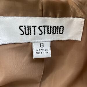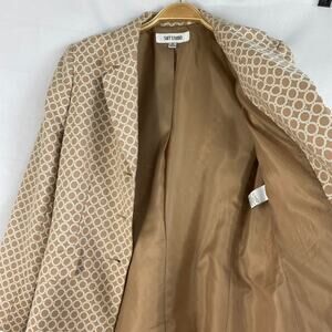 Suit Studio Trench Coat Blazer Women 8 Tan Geometric Retro Career Spring NWOT